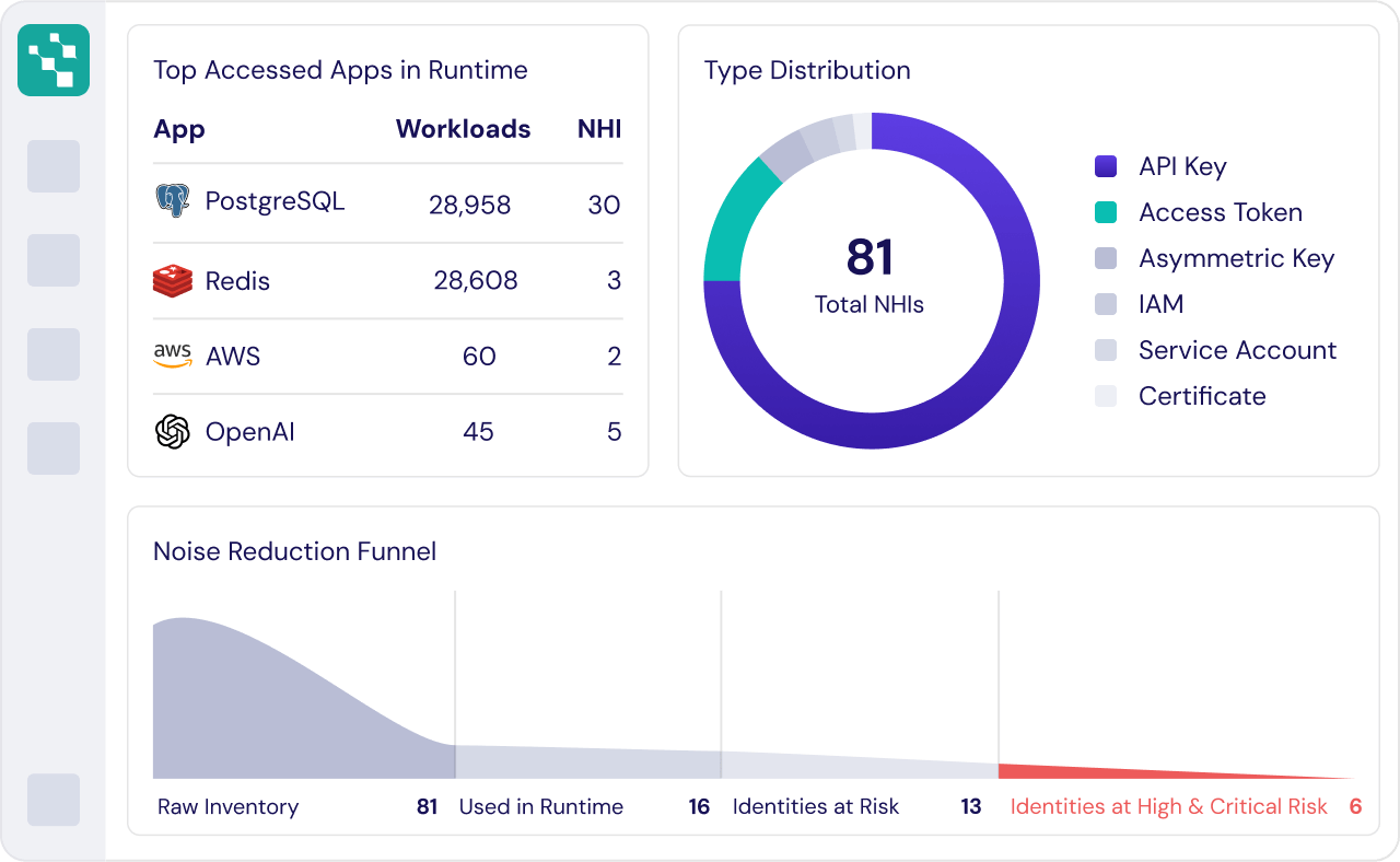 Request a Live DemoGet a real-time view of every machine identity and secret across code, pipelines, cloud, and on-prem systems. Running at real time, Hush reveals not just an inventory but how identities are actually used, which services are communicating, what credentials are in play, and where risks are hiding.